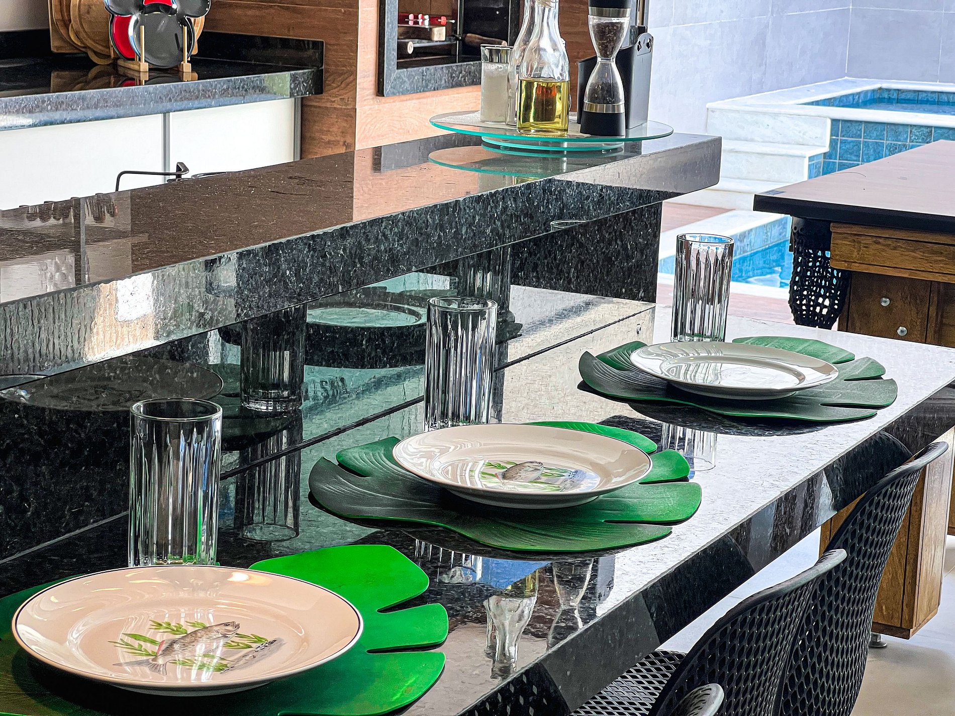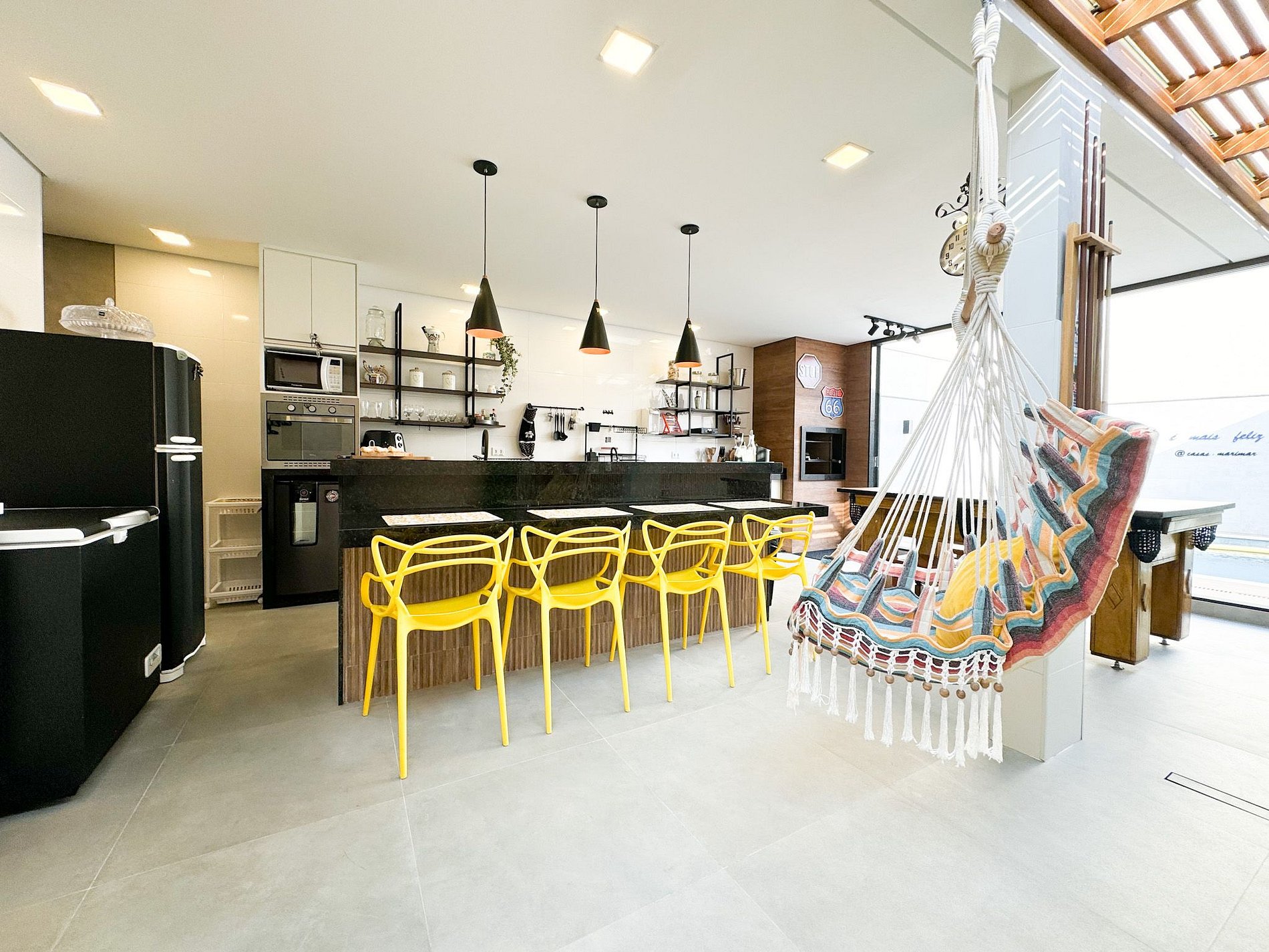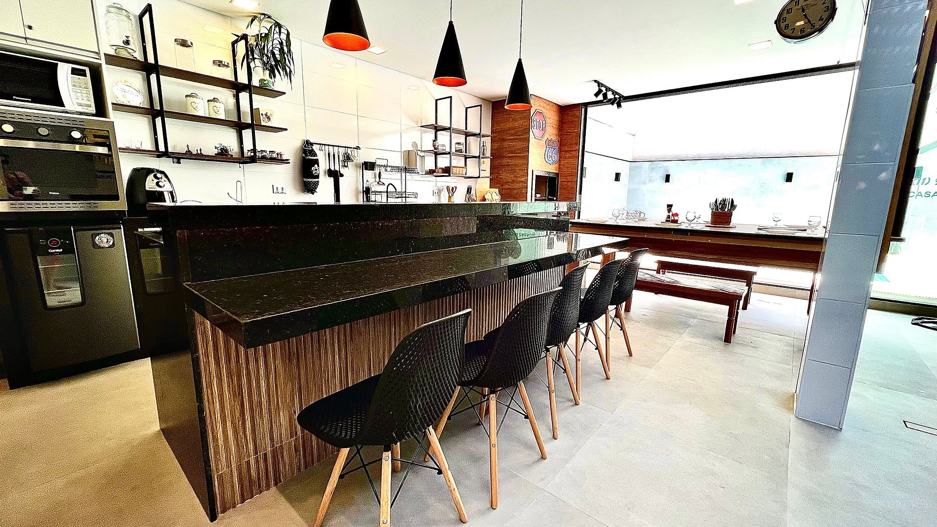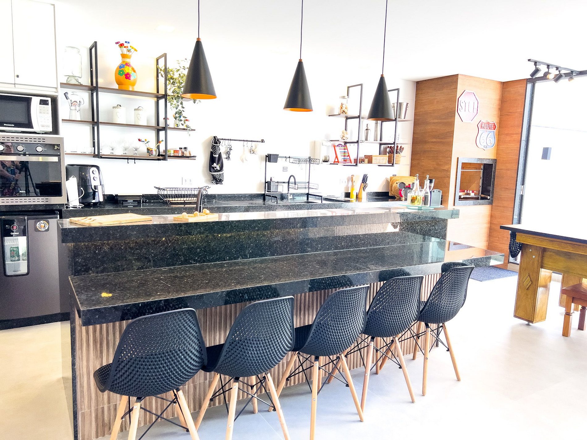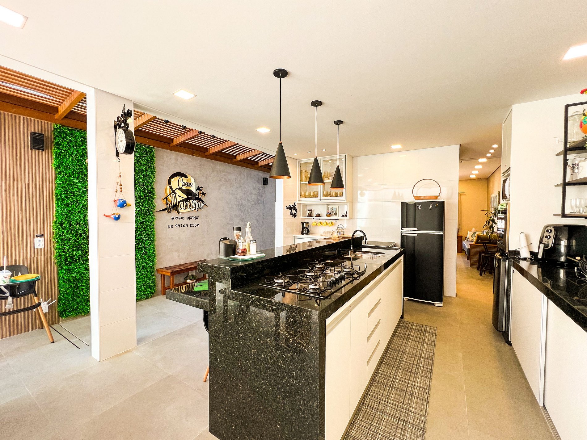 • Cozinha completa com ilha central, cervejeira e todos os utensílios