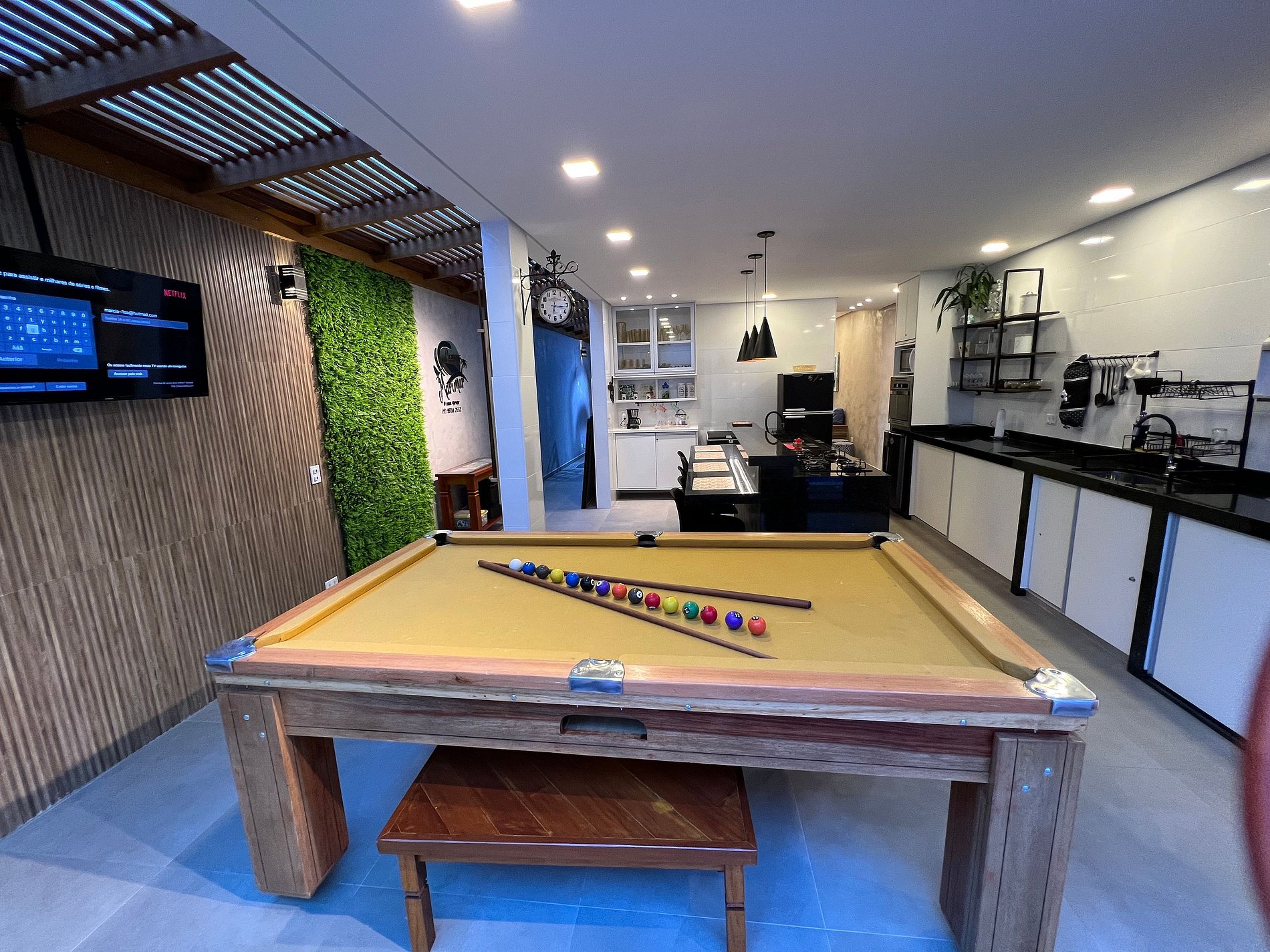 A casa é uma experiência de hospedagem incrível , piscina com hidro sinuca, ping Pong ,eletrodomésticos ,todos dormitórios com ar condicionado quente e frio, maquina de lavar roupas, cafeteira dolce gosto,vagas de garagem para 2 carros, cervejeira ,cozinha gourmet totalmente integrada.