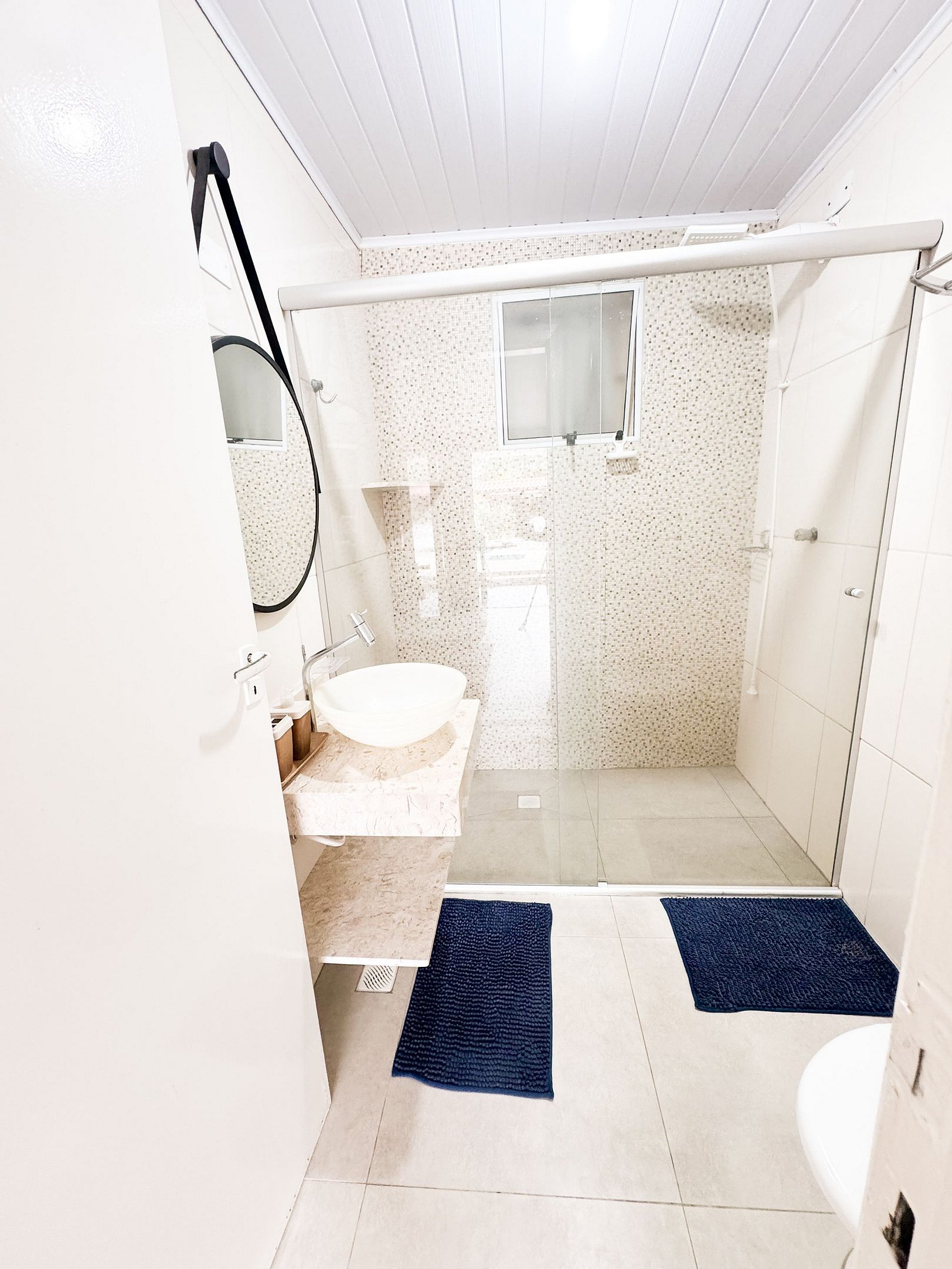 * BANHEIROS - Box Blindex ,tomada 220 volts ,sabonete liquido , papel higiênico .